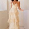Dress to impress in the Chic Whispers Maxi Dress. Featuring a gorgeous sheer mesh skirt and a tie-up back that’ll have the spotlight on you! Style with heels and curls for a ‘fit that’ll crown you best-dressed