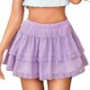- Relax fit, above knee. Layer ruffle hem a line skirt with elastic waist design, bring you a comfotable day while highlight your body curve, make your leg look longer.