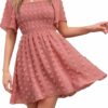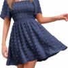 - Design: This summer dress features a soft swiss dot fabric, a square neckline, short flutter sleeves, ruffl hem, smocked, and a flowy swing skirt with lining.