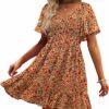 - Design: Embrace a chic boho floral swing mini dress featuring a smocked bodice with short sleeves and a stylish square neckline. Its a-line cut is finished with delicate ruffles, creating a trendy, feminine look that drapes beautifully as you move.