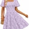 - Design: Embrace a chic boho floral swing mini dress featuring a smocked bodice with short sleeves and a stylish square neckline. Its a-line cut is finished with delicate ruffles, creating a trendy, feminine look that drapes beautifully as you move.