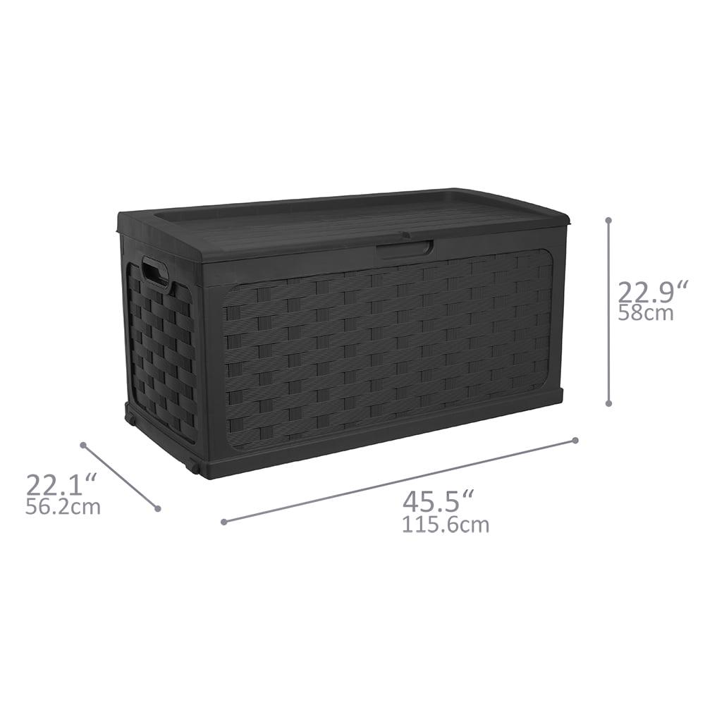 Perfect for storing pool toys, towels, tools, and gardening equipment. The lid doubles as a seat, providing versatile outdoor seating. Easily movable and suitable for various spaces.