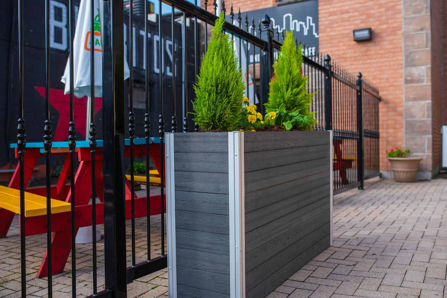 The Urbana Large Parklette Planter offers a sophisticated design ideal for herbs and decorative plants. Made from embossed PVC for a wood-like look with vinyl durability, it is BPA and phthalate-free, ensuring safe food production. The modular design allows for customizable layouts.