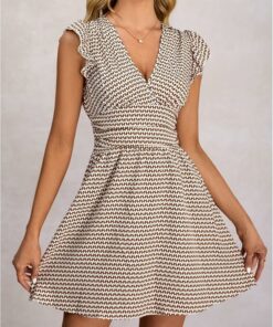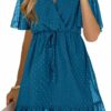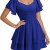 - Feature: Wrap v neck, ruffle sleeve, flared a line, flowy swing hem, low cut, gathered waist, short dress