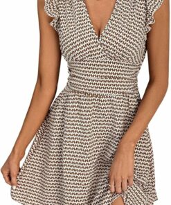 - Feature: Wrap v neck, ruffle sleeve, flared a line, flowy swing hem, low cut, gathered waist, short dress